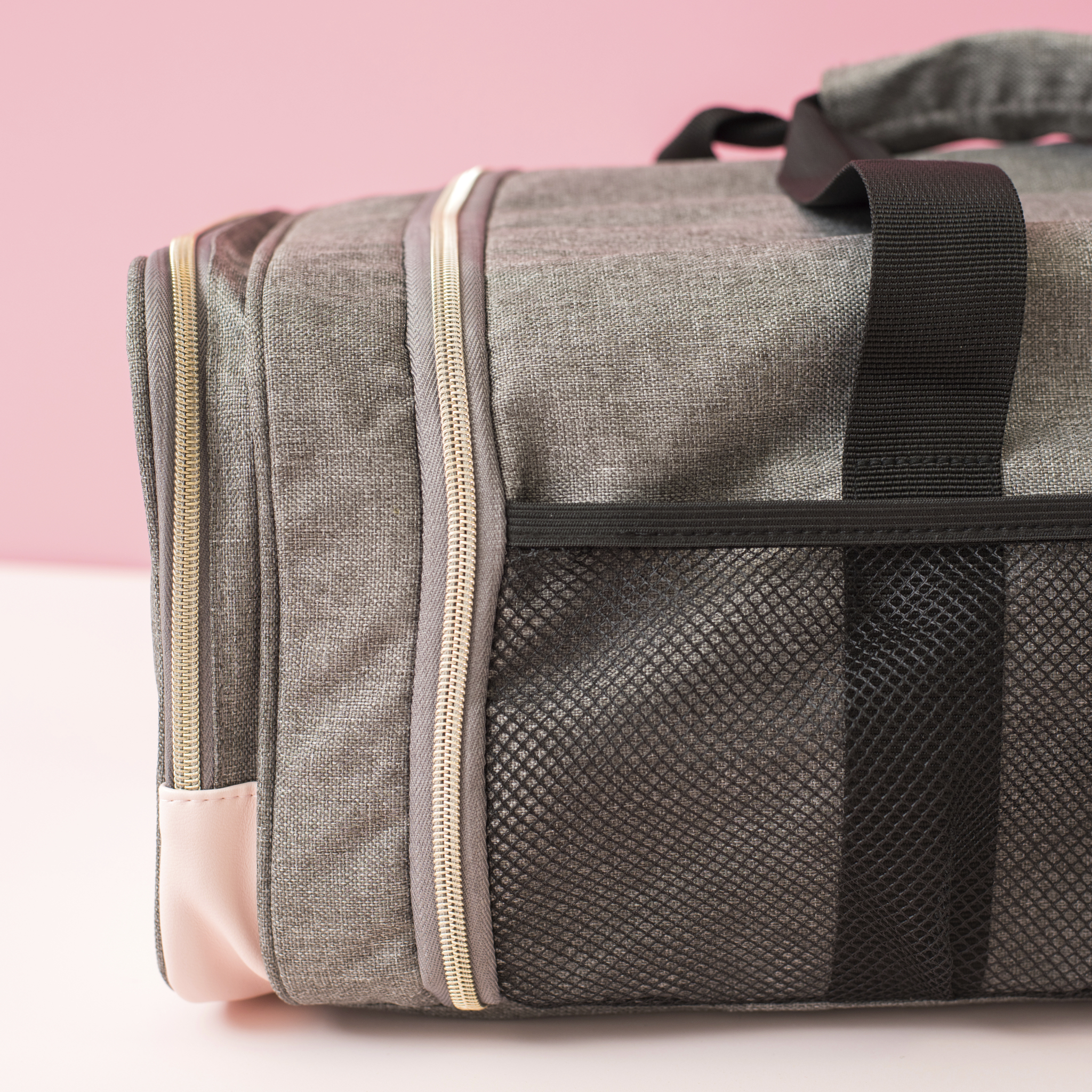 In this picture, it is shown with the Brother Die Cutting machine. However, it fits any machine between the sizes of 21"x8.5"x7.25". From my research, it should fit Silhouette Cameos and Cricut Airs (although a bit of a tight squeeze for the Cricut)! The bag has a great set of buckles to hold your machine in tight during travel. And perhaps my favorite part? The tool card with elastic loops to keep your tools organized while you are out and about! The card fits right in the size zipper pockets!
